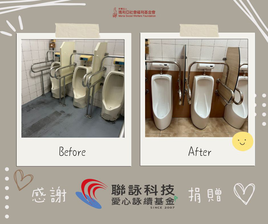 愛心企業聯詠科技知悉無障礙廁所急需修繕,發起內部員工捐款支持修繕工程經費。