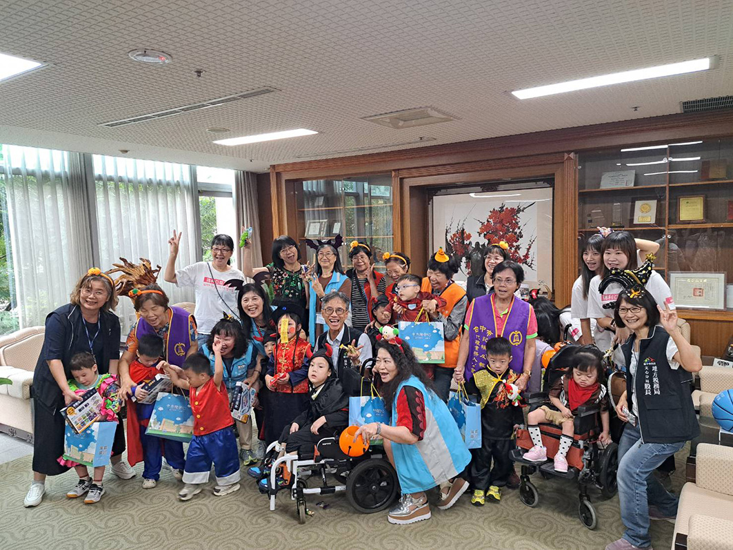 萬聖節不只是孩子們最期待的變裝派對時光,也是增加社交體驗的絕佳機會。為了讓早期療育兒童在節慶中也能體驗快樂與自信,「臺中市政府地方稅務局」於10/28邀請本會早療小天使至局內與民眾.同仁一起過節,讓孩子們在「不給糖就搗蛋」的歡笑聲中,展現學習的成果。