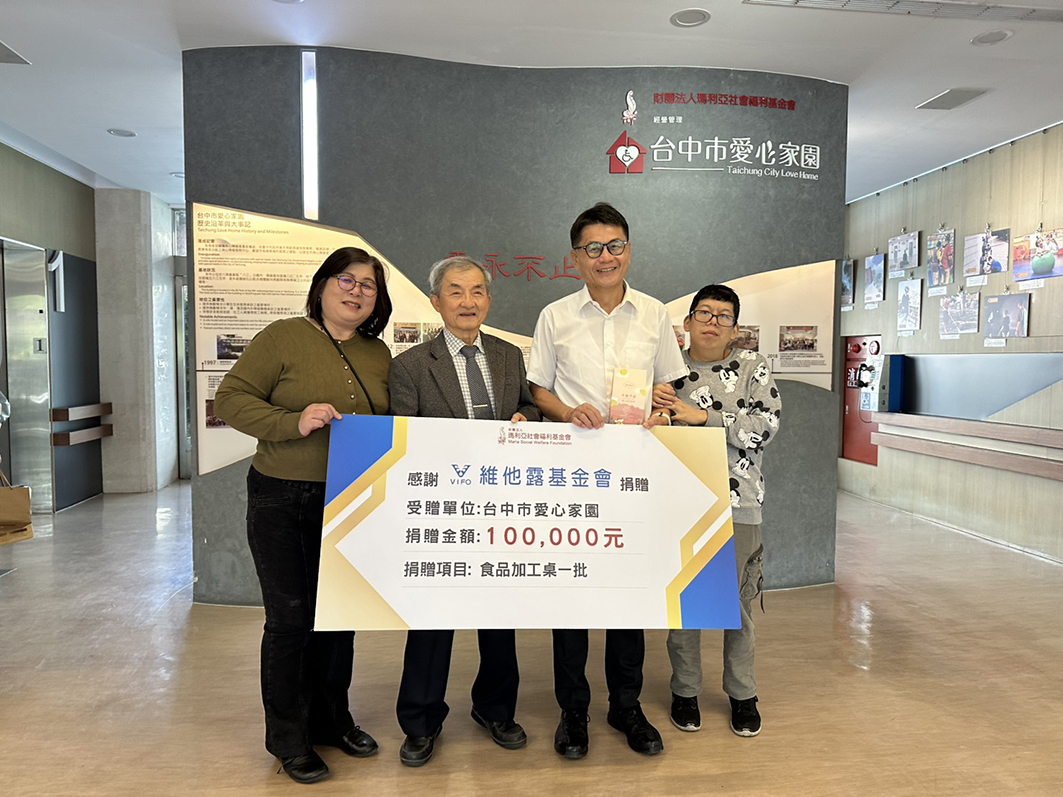 維他露基金會長年熱心公益,年年捐助社福團體挹注善款,即使在疫情嚴峻時期,仍是愛心不斷線的支持本會設施設備的添購,此次詹益榮執行長知悉愛心家園食品加工桌老舊需汰換,即捐助汰換經費,嘉惠瑪利亞青年參與工作更便利,優化工作流程,提升環境安全。