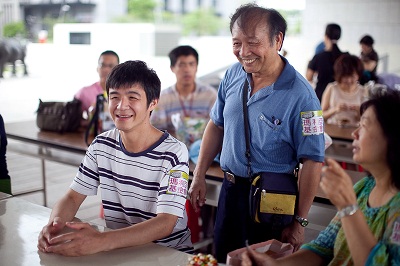 與瑪利亞結緣二十年,現為本會董事的曾溫亮先生總暱稱兒子阿霖為「小王爺」。阿霖出生六天因高燒及先天性心臟病,緊急送進加護病房,成為重度腦性麻痺,從此,開始了曾董事一生的修行路。 他回憶當初:「我堅信是上帝特別選了我當小寶貝的父親,因為祂認為我已具備了照顧小寶貝的條件,也因為祂將補強磨練我性格上某一部份的不足,將小寶貝擁抱在懷中時,我深深的感受到我們心靈一體的顫動,我愛他是那麼的全心全意,我願意為他全心全意的奉獻。」這個承諾至今始終沒變。 因為這樣,曾董事把阿霖當作再來人間渡化他的佛,為他洗澡,就像在浴佛,餵他吃東西,就是在供佛,所以阿霖成了他的「小王爺」。阿霖因情緒不穩而大發脾氣時,他也學著用正面獎勵和溫和溝通,而磨掉自己很多的脾氣,更多了包容、謙卑和感恩;更因為阿霖,他結識了一批不一樣的人,進入了一個不同的世界,世人汲汲營營的功名利祿如浮雲,人生另有它的豐厚和色彩。 為了籌建瑪利亞霧峰家園的經費,曾董事與一群家長做資源回收,假日常帶著阿霖一塊兒幫忙,他儘量給阿霖製造許多的生活經驗,愛唱歌就帶他去卡拉OK,愛收東西就一起資源回收…,這些伴著小王爺出巡的時光,是父子間最緊密、最快樂的連結,阿霖享有和一般孩子的正常生活。 去年,阿霖進入了社區居住家庭,在老師的支持下更為獨立自主。曾董事感慨地說:「我曾經以為孩子終生要在被保護的環境中長大,這樣對他是最好、最安全的;沒想到他有一天,居然可以在社區內和同儕們一起過日子,我的寶貝真的很棒,他真的長大了。」這對一路陪伴阿霖成長的曾董事而言,其中的感動和激動是言語無法形容的! |