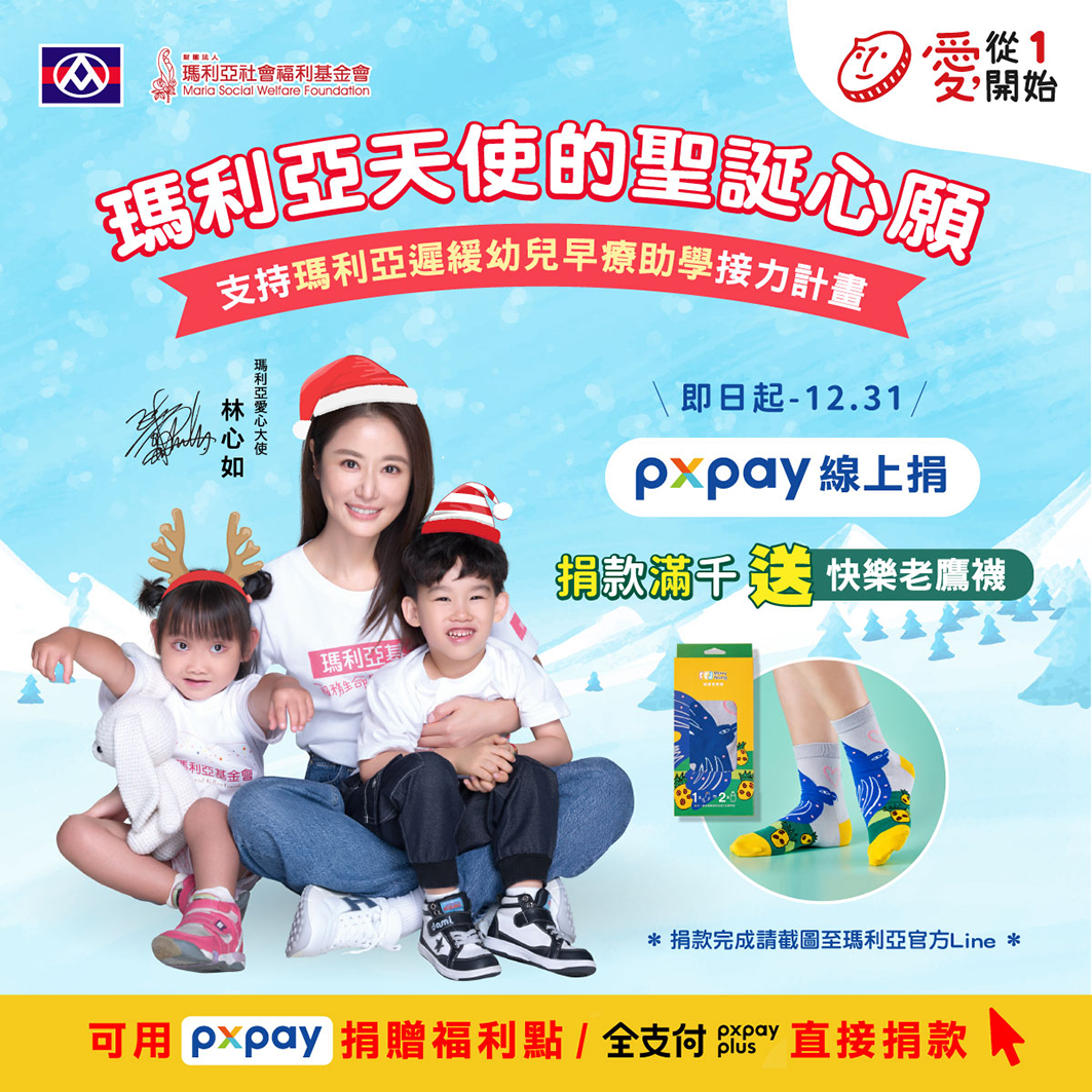 2025年10月至12月,瑪利亞攜手全聯福利中心、大全聯、全聯佩樺基金會邀您一同響應一塊接力支持「瑪利亞遲緩幼兒早療助學計畫」