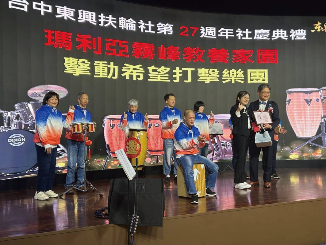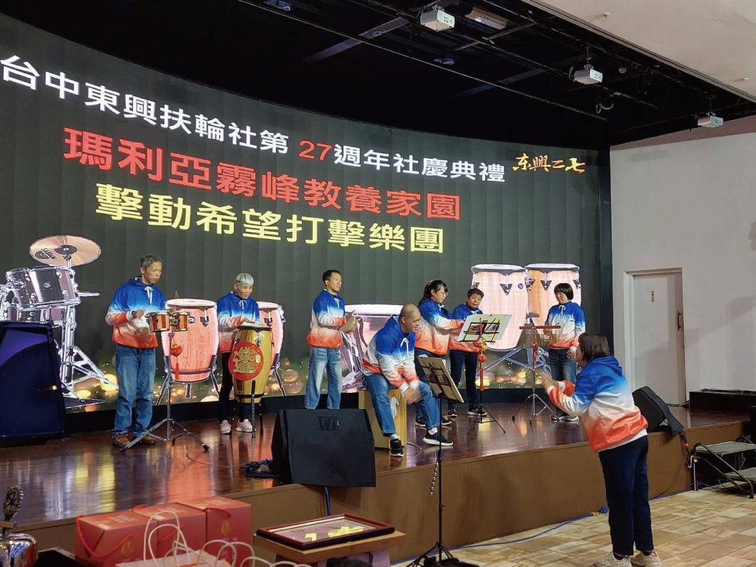 | 感謝台中東興扶輪社27週年社慶 邀請瑪利亞霧峰家園打擊樂團演出並捐贈社福金 |
