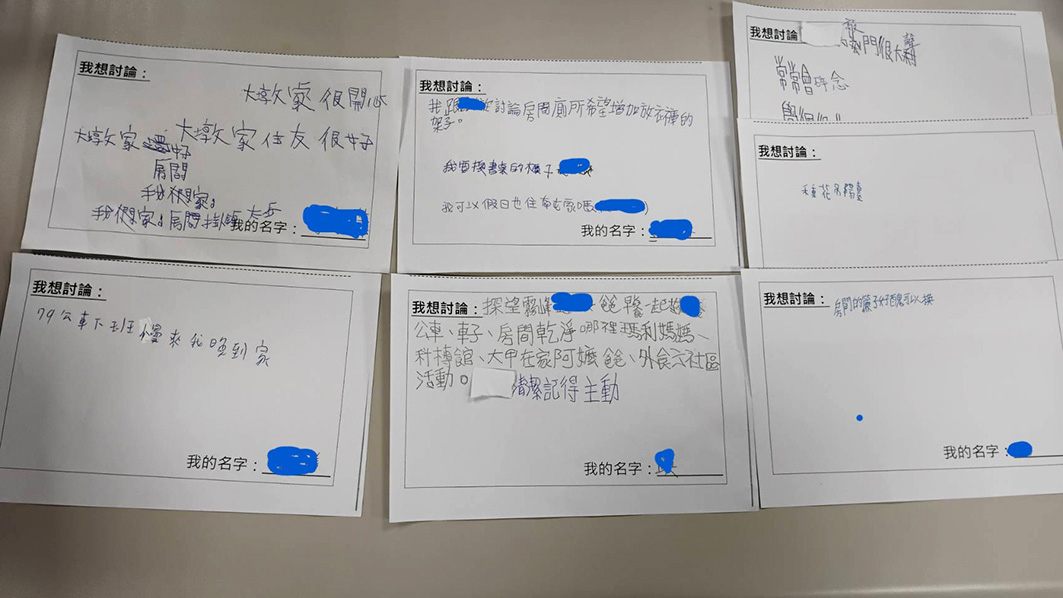 會議由住民擔任主席、紀錄與拍照,並透過舉手發言、互相尊重的方式進行討論;支持者則扮演陪伴與支持的角色,不直接介入討論,支持住民有機會表達想法、傾聽彼此意見,共同做出生活決定。
