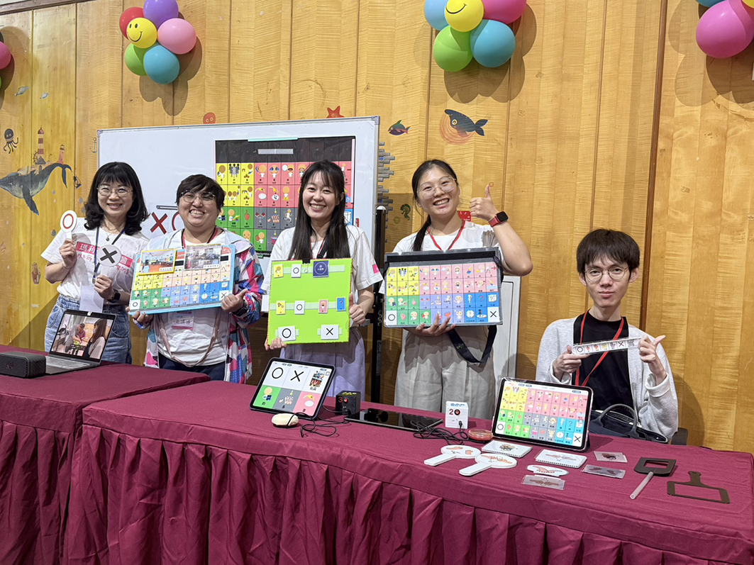 於3 月27 日在彰化舉行的「115 年育智獎頒獎典禮」中,本會以「溝通不設限:AAC 溝通50+,科技與指尖的對話」為主題設立展示攤位。現場由專業工程師郭育瑋、語言治療師張芠馨、張仕旻及教保員黃靖婷組成專業團隊,與來自全國的心智障礙服務的人員及長官交流。