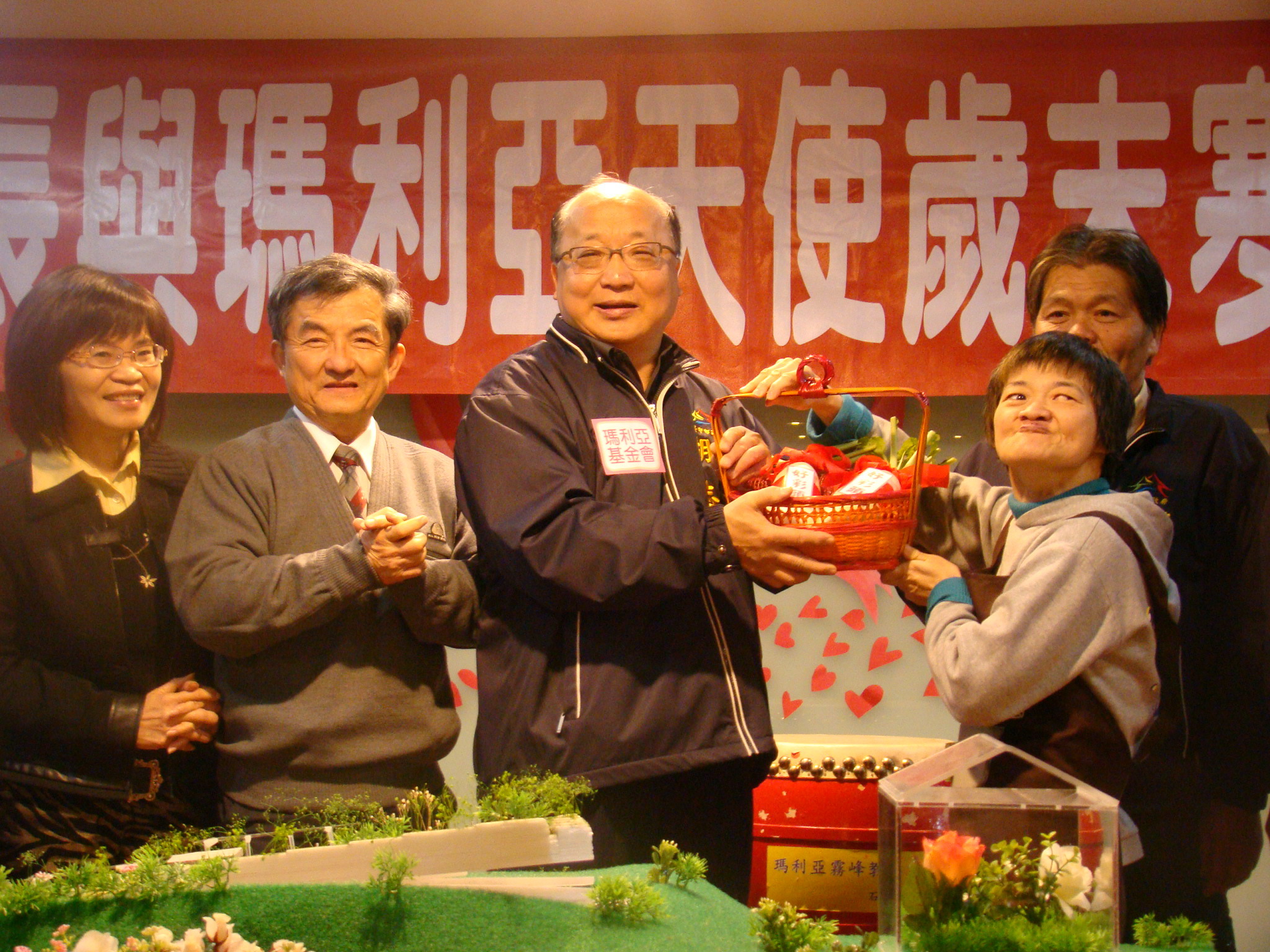 霧峰家園的服務對象目前約112人,家庭功能完好者僅少數,即便過年期間有探親假,但園區內一年一度的圍爐仍不可少,大家團團坐在一起辦桌,歡樂的年節氣氛,是服務對象每年期待的快樂時光。 雖在選舉請假期間,胡市長仍心繫霧峰家園,每年這個時候,市長都會記得來看看我們,與青年們話話家常,送上溫暖的關懷,當胡市長獲知新農莊尚缺經費時,他當場承諾兩個月內募集「一百萬」經費,支持瑪利亞實現願望,服務對象獲知後個個開心歡呼。 當天並有服務對象致贈好彩頭給胡市長,希望明年台中市一切有「好彩頭」!另外還有紅蘿蔔、花椰菜,這些都是園區服務對象們在農莊辛苦種出的成果。 |